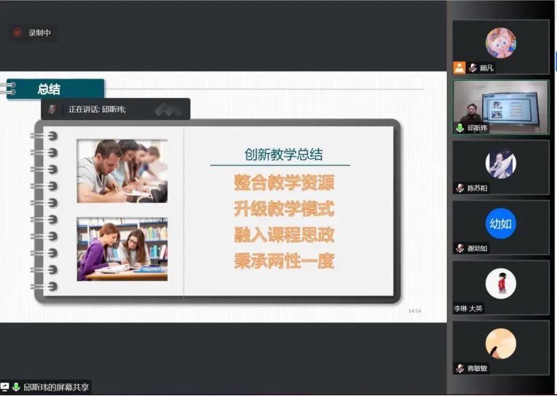 本次线上决赛以“教学创新设计汇报”的形式进行,参赛教师紧扣“推动教学创新,培养一流人才”主题,深挖教学痛点,通过重构教学内容、创新教学方法、创设教学环境及多元化评价教学效果等途径,展示了课堂教学中的新思维、新策略。