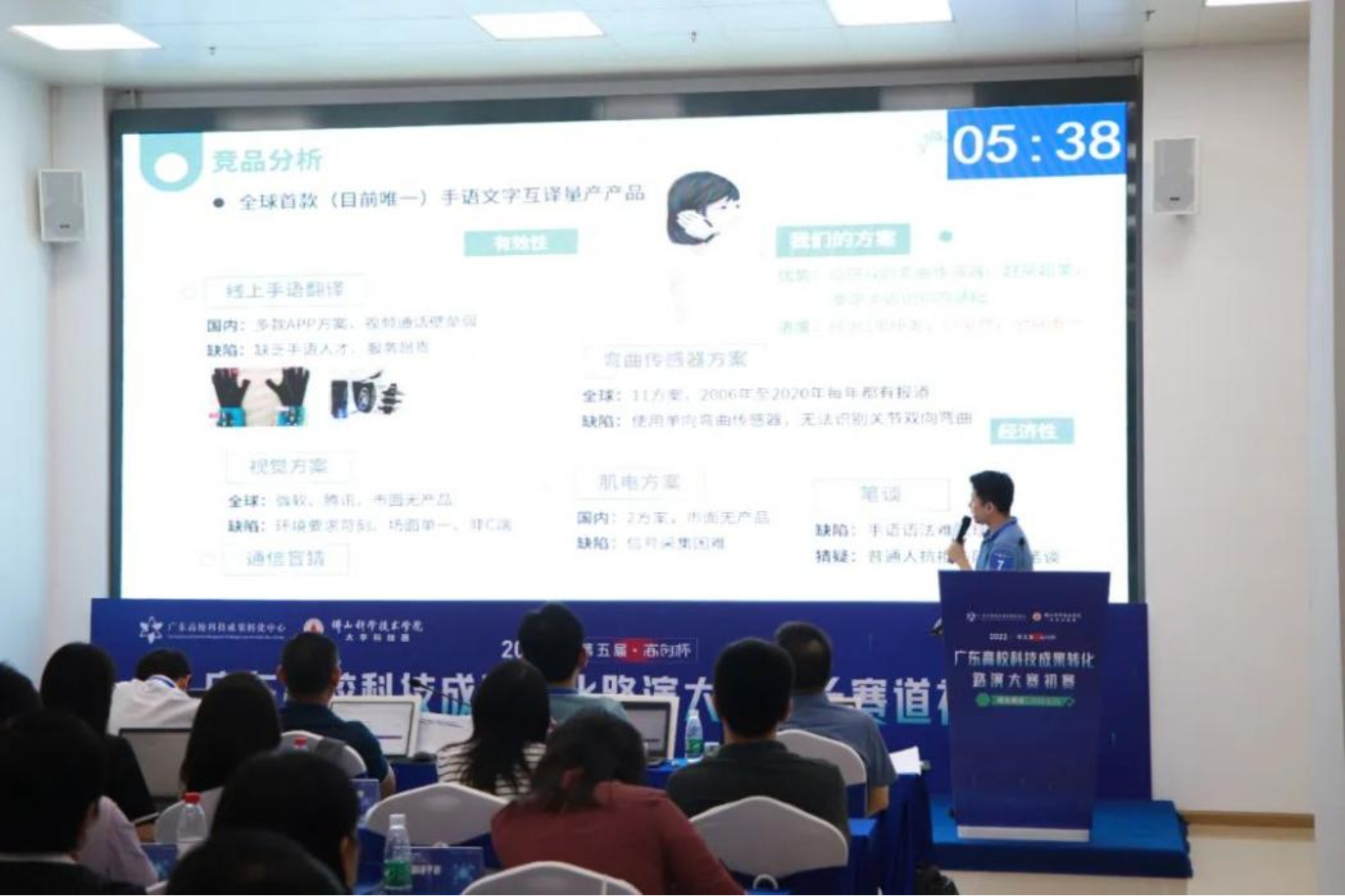 于维佳在2022年第五届“高创杯”广东高校科技成果转化路演大赛现场