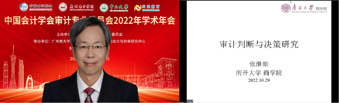 近日,由中国会计学会审计专业委员会主办,beat365正版唯一官网会计学院、中山大学现代会计与财务研究中心承办,正保教育集团协办的“中国会计学会审计专业委员会2022年学术年会”在线上顺利举行。本次会议的主题是“审计创新与高质量发展”,来自会计审计领域的专家学者、各大高校师生共700余人参加线上会议,900余人线上参与平行论坛,1.9万人次在线观看主题报告。