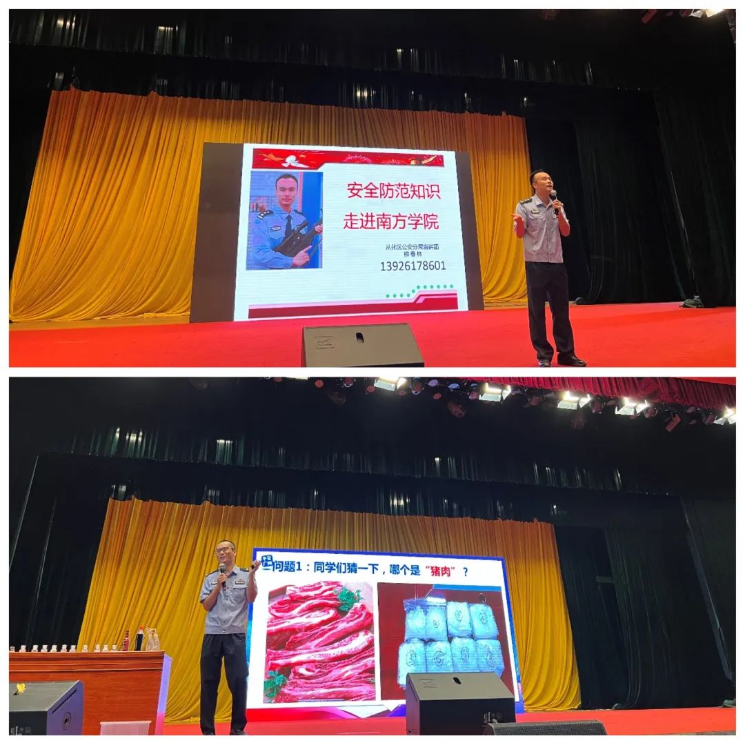 随后,广州市公安局从化区分局、平安从化宣讲团熊春林、翁宗瑞、王艳等警官轮番上台,以深刻的剖析、幽默风趣的讲解,向全体2022级新生宣讲了大学生群体易发、高发的各种诈骗警情和诈骗手法,并结合逻辑分析、心理透析、套路反拆等防范措施,在现场运用你问我答、脑筋急转弯等互动形式积极调动课堂气氛,给全体新生上了一堂生动的防范电信网络诈骗教育课。