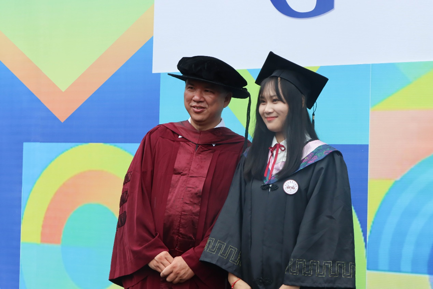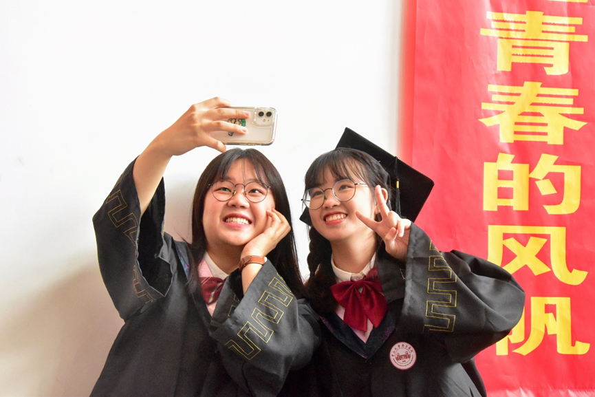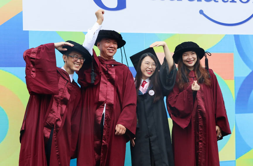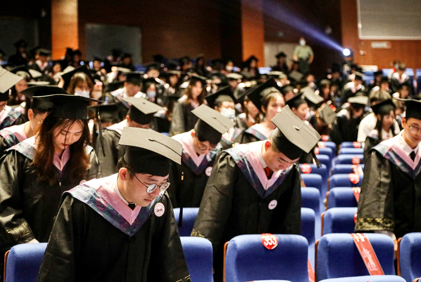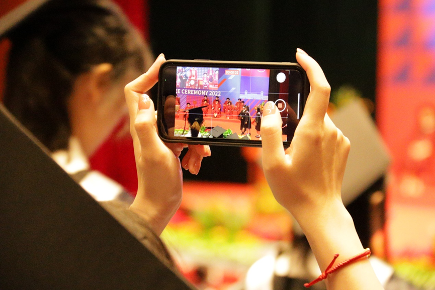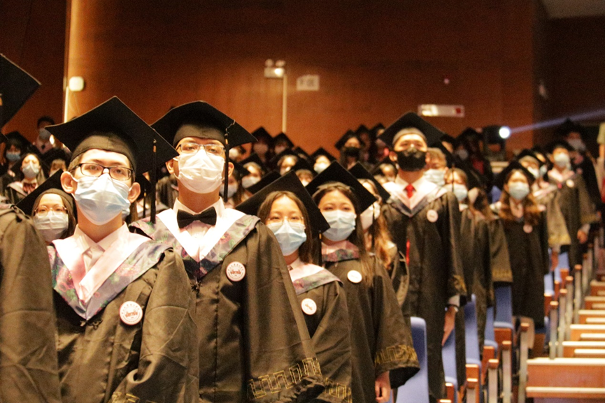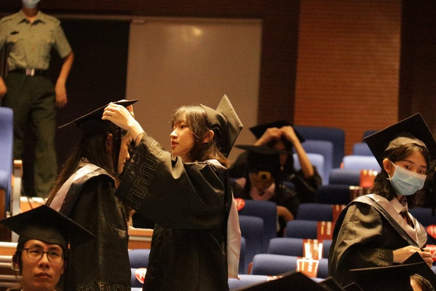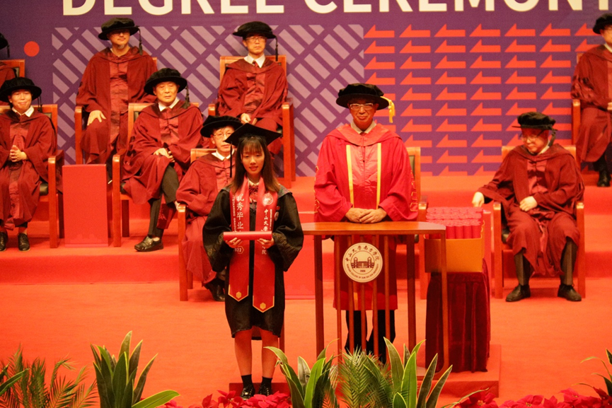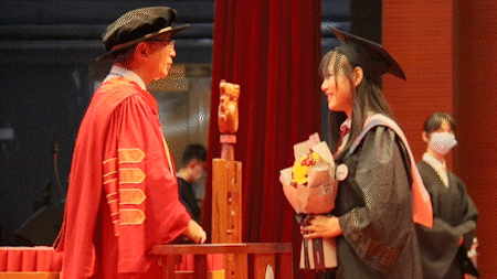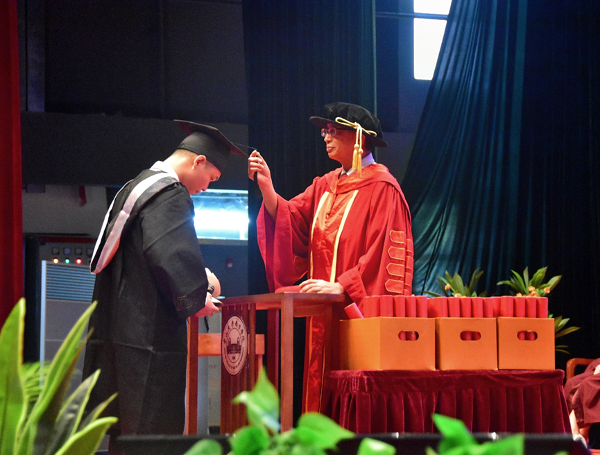 在随后举行的颁授仪式上,喻世友校长为2022届毕业生们依次授予学位。当帽上的流苏拨过,奋斗的岁月、相伴的时光、温暖的祝福都定格在了一张张照片中。