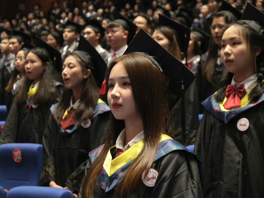 在场全体毕业生起立,奏唱国歌