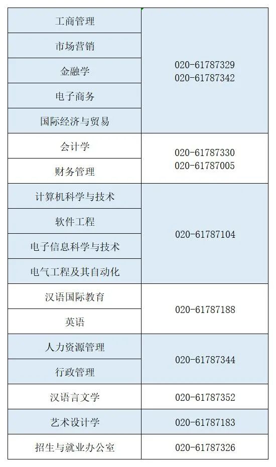 各招生专业咨询电话: