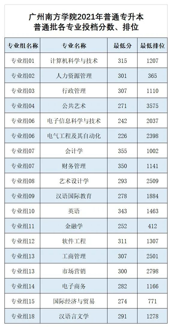 2021年录取最低分数及排位情况