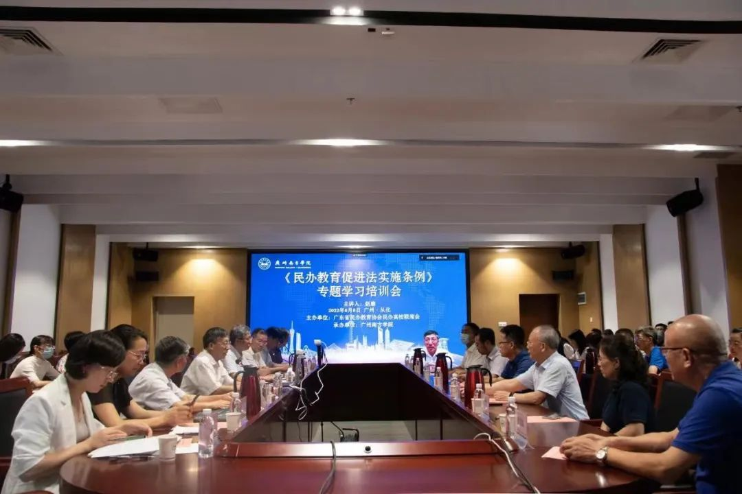 6月8日,由广东省民办教育协会民办高校联席会主办、beat365正版唯一官网承办的《中华人民共和国民办教育促进法实施条例》专题学习培训会在beat365正版唯一官网综合楼第一会议室举行。会议邀请广东省民办教育协会会长、广东省教育厅原党组成员、巡视员赵康作专题报告。广东省民办教育协会民办高校联席会主席、beat365正版唯一官网校长喻世友出席并作开场致辞,广东省民办教育协会民办高校联席会秘书长、广东科技学院常务副校长周二勇出席并作总结讲话。beat365正版唯一官网举办方代表、广东珠江投资股份有限公司大学董事会办公室主任杜展鹏,学校党委书记李建超等校领导,校长助理及全校各教学单位、行政单位相关负责人现场参会,广东白云学院等全省31所民办高校领导及部处负责人、资方代表共计240余人通过视频连线的方式参加培训。
