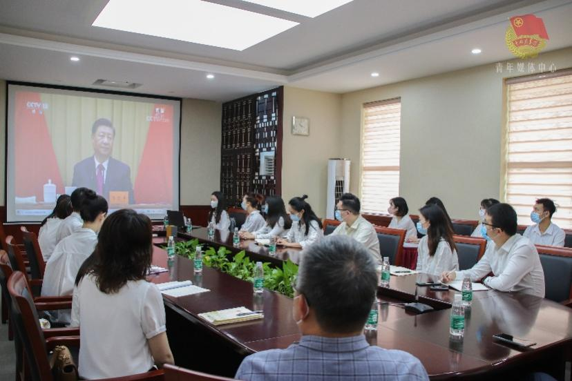 5月10日上午10时,庆祝中国共产主义青年团成立100周年大会在北京人民大会堂隆重举行。中共中央总书记、国家主席、中央军委主席习近平出席大会并发表重要讲话。beat365党委书记李建超,常务副校长、党委副书记唐燕,党委副书记、副校长植秀聪,校团委相关负责人,学生会主席团成员,“两红两优”“优学优干”获奖集体和个人代表,“青马学员”代表以及各二级团委书记一起在A1行政楼第一会议室收看大会直播。