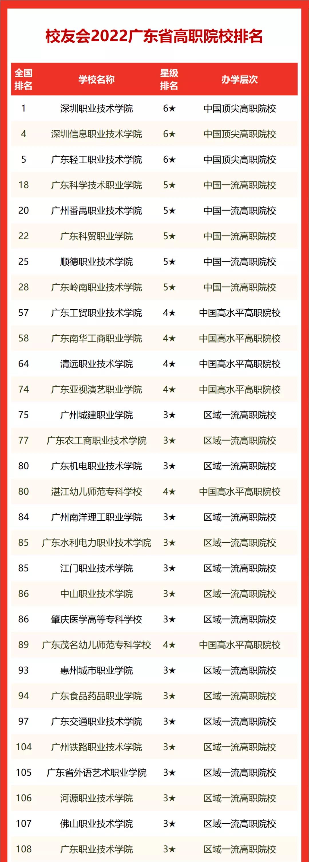 深圳职业技术学院雄居2022广东省高职院校排名冠军,广东轻工职业技术学院跻身前3强