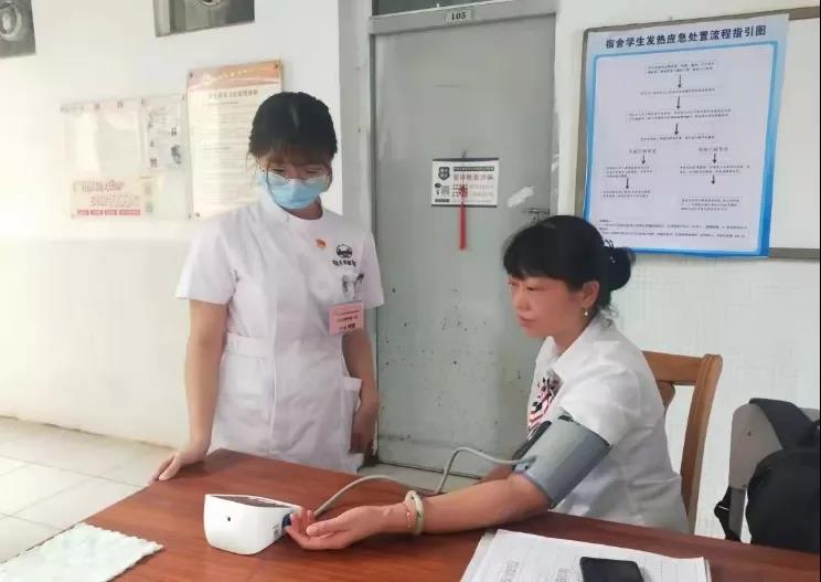 护理与健康学院聚焦专业优势开展“我为群众办实事”实践活动,充分发挥护理专业特色,连续组织开展三期“关爱学校职工,免费量血压”活动,护理与健康学院学子逐一为职工测量血压,同时进行健康知识宣教;组织开展“践行初心与使命,握好健康方向盘”健康知识科普活动,用通俗易懂的语言、借助生动有趣的的游戏方式向大家进行药物、食物相生相克以及血压知识科普。