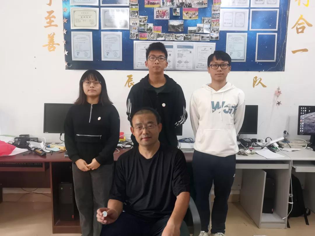 获奖师生合影(前张巍老师,后左至右为学生应凌玉,叶卓恒,李全佳)