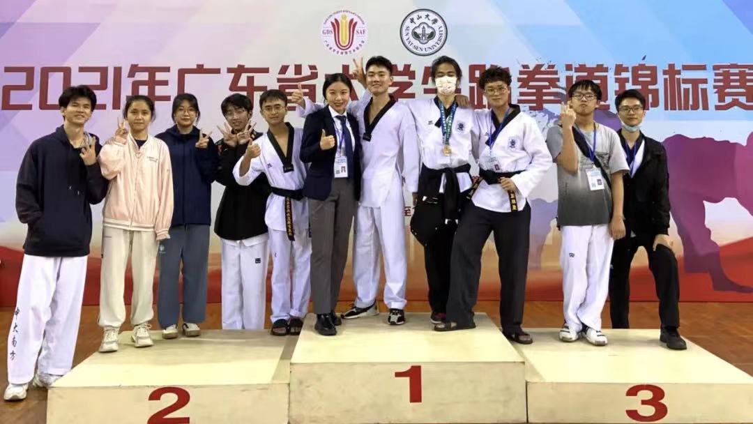 近日,由广东省教育厅指导,广东省学生体育艺术联合会、中山大学、广东省学生体育艺术联合会跆拳道运动协会联合主办的2021年广东省大学生跆拳道锦标赛在中山大学东校区体育馆举行。beat365跆拳道队10名队员在体育教学中心副主任彭彬、教师高雪岩的带领下首战告捷,获得了2枚铜牌、7个第五名以及团体积分二等奖的佳绩!此外,高雪岩老师荣获“优秀教练员”称号。