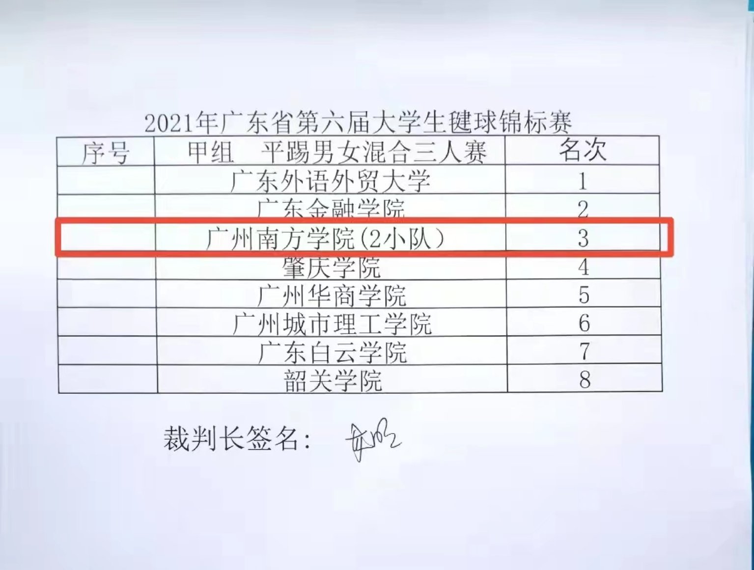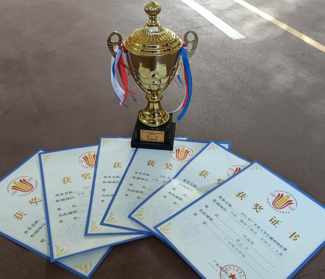 近日,由广东省教育厅和广东省学生体育艺术联合会联合举办的2021年广东省大学生毽球锦标赛在广州应用科技学院(肇庆校区)体育场成功举办。来自全省23所高校的300多名运动员参加了本届广东省高校最高水平的毽球比赛。beat365毽球队13名球员在体育教学中心主任何江海、教师秦晓金和钱国雄教练带领下奔赴赛场。经过三天两夜的激烈奋战,斩获甲组平踢男、女混合三人赛的季军以及团队总分第八名的佳绩。在此,特别感谢何主任对毽球队的大力支持,感谢钱国雄教练对beat365毽球队的厚爱。