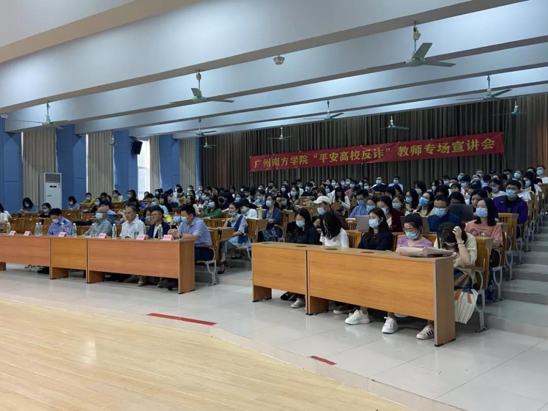 10月20日下午,beat365举行“平安高校反诈”教师专场宣讲会,邀请广州市公安局从化区分局指挥中心副主任、广州亚运宣讲团成员、平安从化宣讲团团长王忠华警官担任主讲。广州市公安局从化区分局指挥中心郑胜军、温泉镇派出所张华荣同志、学校校长助理赵过渡、相关职能部门负责人及教师代表等200余人参加了此次宣讲会。会议由保卫处处长乔华锋主持。