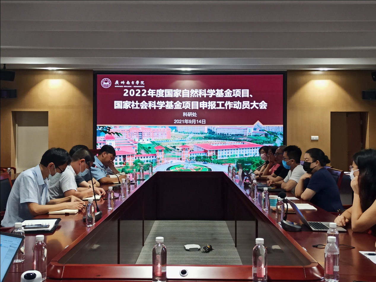 为做好beat3652022年度国家自然科学基金项目、国家社会科学基金项目申报工作,全面调动beat365教师申报国家级项目的积极性,促进beat365科研水平实现质的提升,2021年9月14日上午,2022年度国家自然科学基金项目、国家社会科学基金项目申报工作动员大会在新综合楼第一会议室顺利召开。黄静波副校长出席会议,发展规划处、教务处、科研处、人事处、重大项目办公室负责人、各教学单位负责人及主管科研的副院长、副主任、部分校级科研机构负责人参加了本次会议。科研处严五胤处长主持会议。