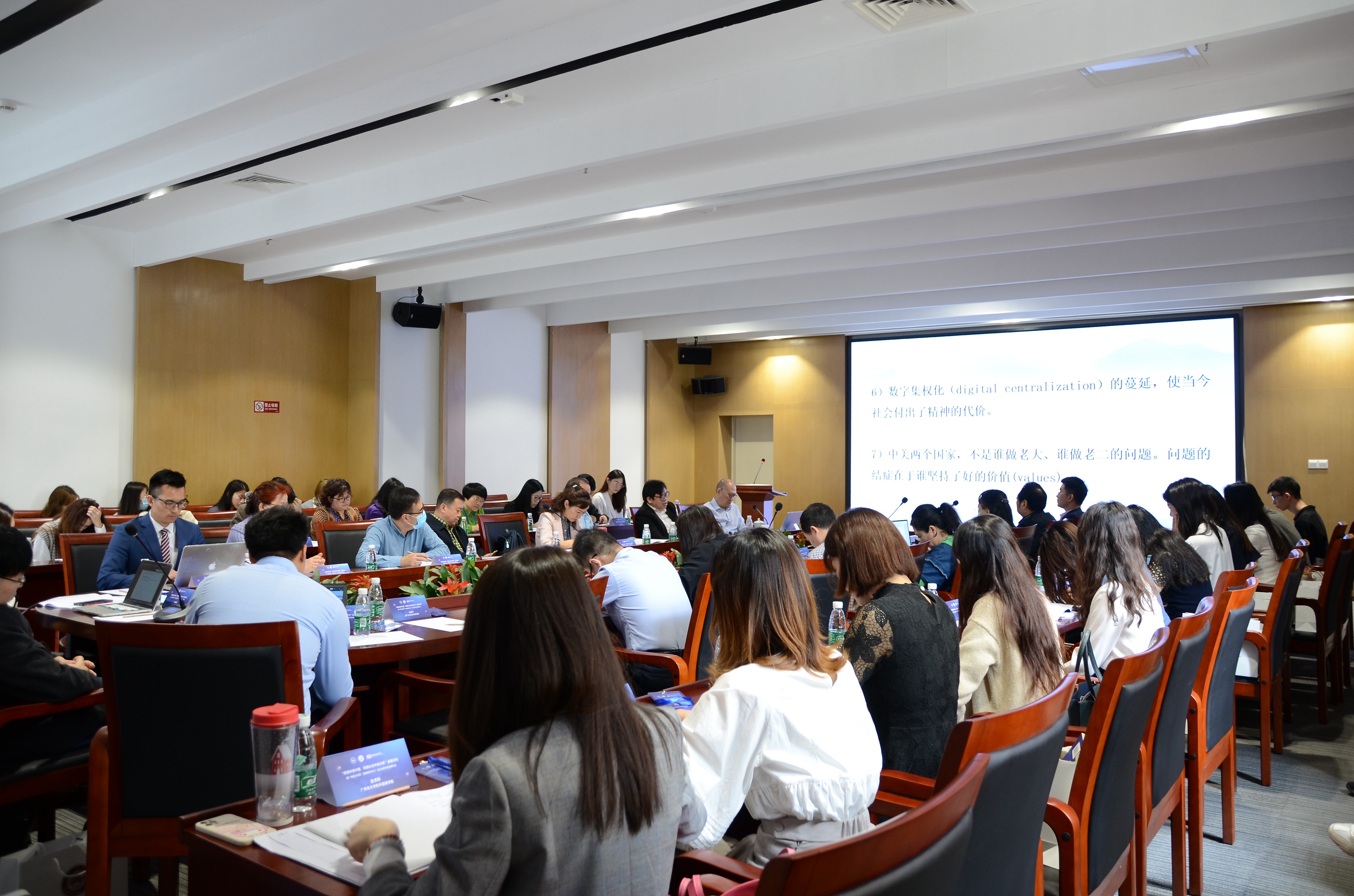 与此同时,第二小组研讨的学者们也热情洋溢,积极参与其中。beat365岳远晟博士基于美国文化讲到了亚太地区环境的变化,引起了在座学者的眷注。中国人民大学博士生导师李巍教授结合现实,联结华为、小米企业的品牌销售量,进而说明在中国大周边国际关系中,杀伤力最大的是技术战;同时李教授也保留着对中国在技术方面实现弯道超车的希冀。第三小组的研讨中,广东外语外贸大学南国商学院权立宏教授从语言学的角度,微观地研究了美国前总统特朗普在新闻报告会中所采用的具有典型性的抵抗措施,并且分析了这些行为所产生的社会原因。针对权教授的精彩报告,小组学者们于第四会议室展开友好讨论。