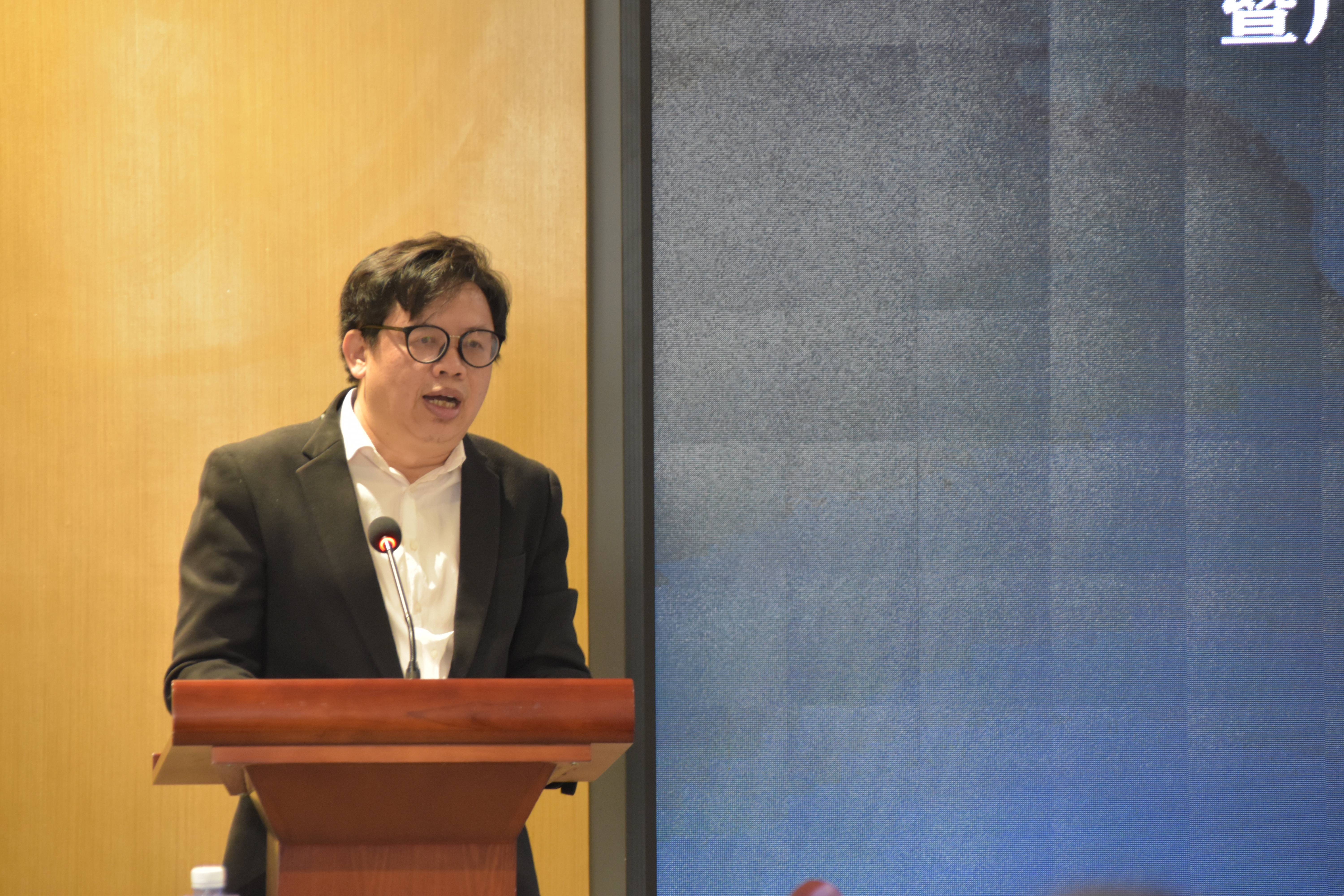 致辞简短而情真意切,时令匆匆而从未苏息。主旨报告发言环节应和着如雷的掌声,款款临近。首先由香港理工大学博士、肇庆学院杨维忠副教授作为南京尚道研究所所长、研究员寒竹先生的主持人发言。杨教授说及寒竹先生对美国研究已久,了解颇深,具有专业且深刻的见解。随后,寒竹先生从美国历史背景出发,提到“危机对于美国来说也是常态,这也意味着美国需进行改革”。他再以“2020年美国大选”引出“美国政党政治面临的危机与挑战”,并从多方面进行报告讲解。学者们也潜心贯注,生怕错过了宝贵的亮点。