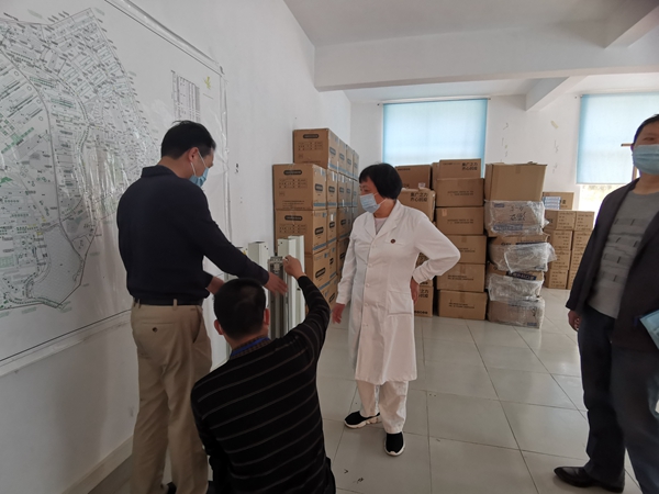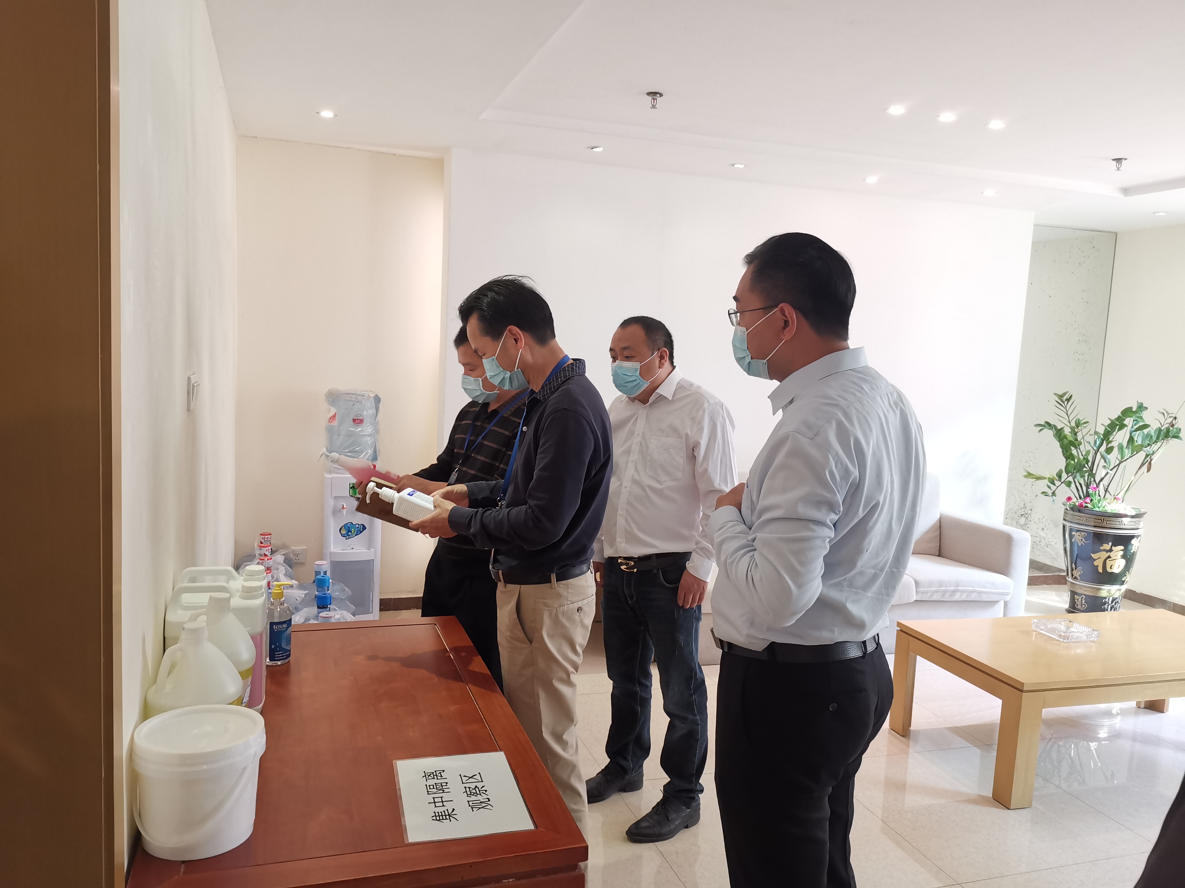 (督查组实地察看食堂、校医院预检分诊区、临时隔离留观室、集中隔离点及防疫物资储备室)