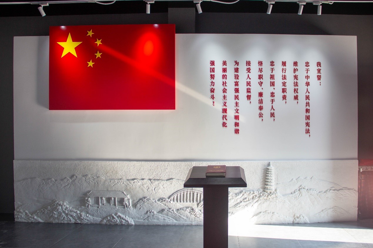 在正式参观展馆之前,面向宪法馆,同学们进行了一次庄重的宪法诵读。