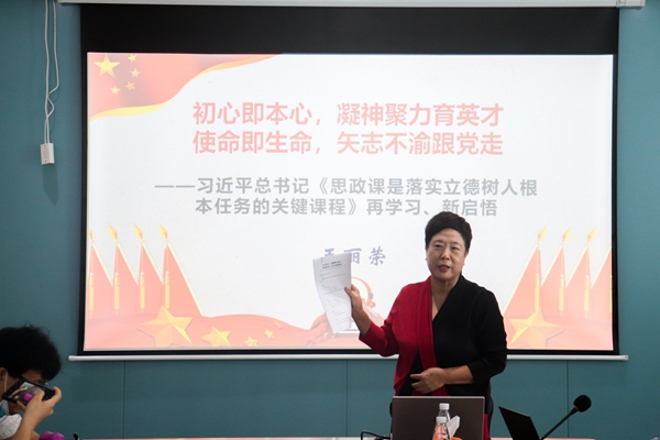 随后,王丽荣院长作了题为《初心即本心,凝神聚力育英才 使命即生命,矢志不渝跟党走——习近平总书记〈思政课是落实立德树人根本任务的关键课程〉再学习、新启悟》的专题报告。在报告中,王院长深入解读习近平总书记在学校思想政治理论课教师座谈会上所作《思政课是落实立德树人根本任务的关键课程》的重要讲话,指出“八个相统一”是思政课改革创新的最新指南。结合beat365我院实际,王院长提出从强信心、创平台、谋新篇三个方面全面落实习近平总书记重要讲话精神,继续大力推进我院“思想者大讲堂”“爱乡土研习营”“红粤论坛”“青年领袖班”等品牌实践育人活动平台的教育工作,以“理论性和实践性相统一、主导性和主体性相统一”为行动指南,充分彰显知与行的统一,不断提升全员、全程、全方位“三全育人”的实效,以铸就民办大学的优质品牌,培养品学兼优、又红又专的中国特色社会主义建设者和接班人。