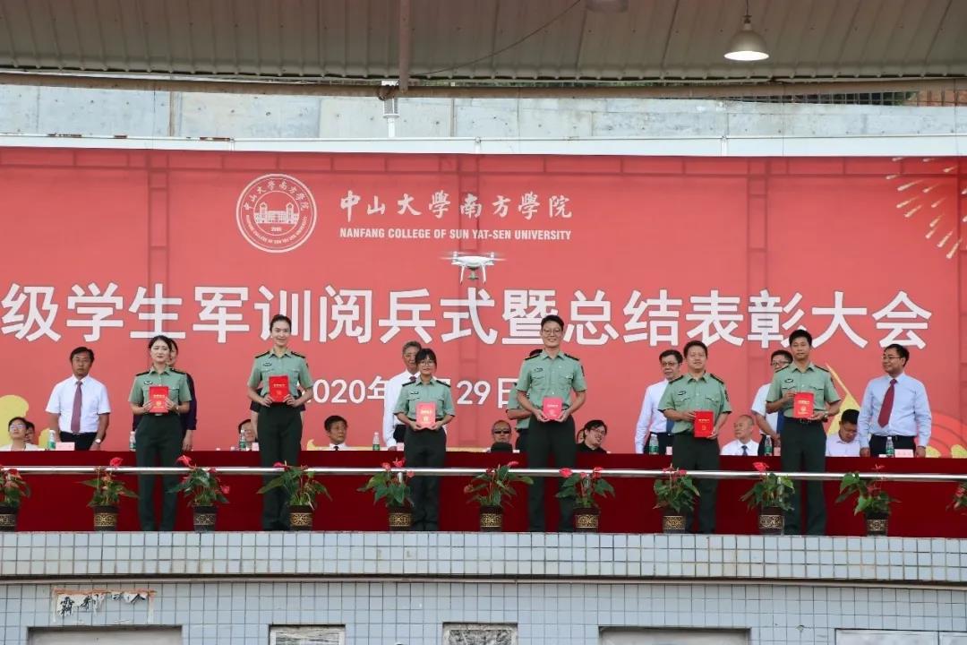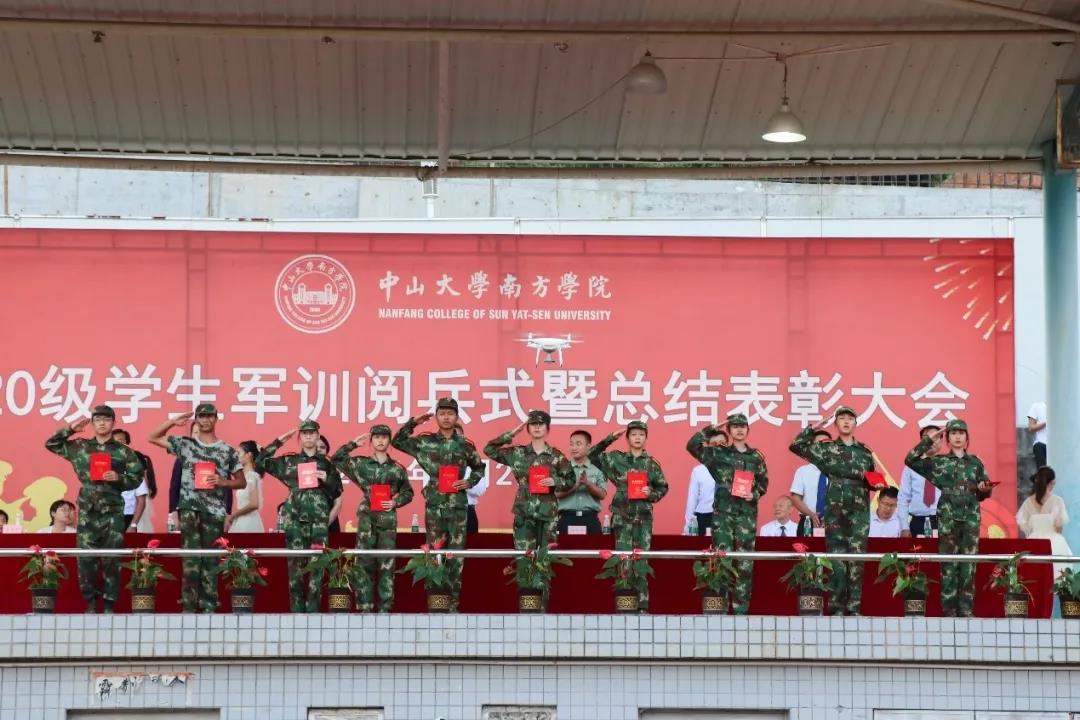 9月29日下午,中山大学南方学院2020级新生军训阅兵式暨总结表彰大会在西区田径场隆重举行。学校领导班子,承训单位代表,各院系代表以及一年级学生工作部代表出席大会,大会由一年级学生工作部部长程爱民主持。