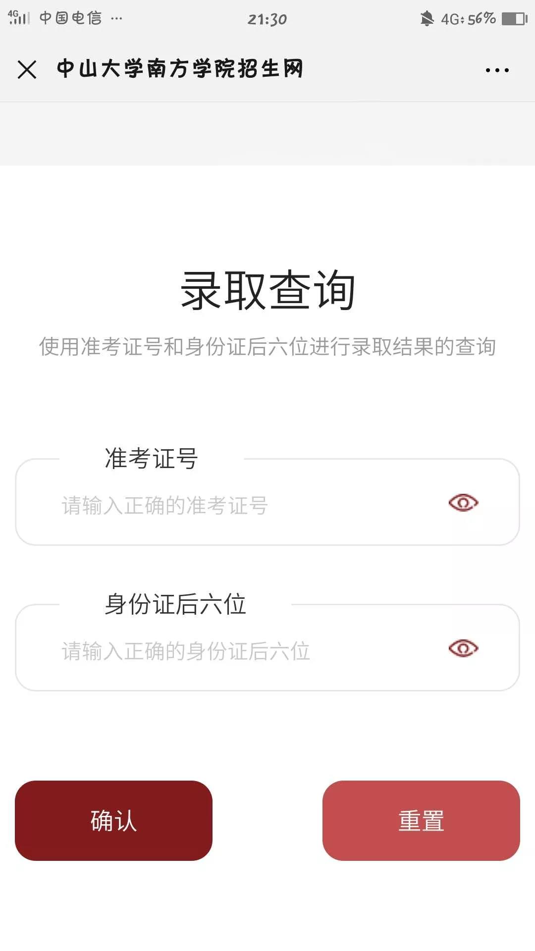 考生可关注“中山大学南方学院招生办公室”微信公众号,点击公众号下方“招生计划-录取查询”栏目,输入考生号(“2044”开头)及身份证号后六位进行查询。
