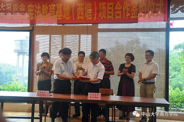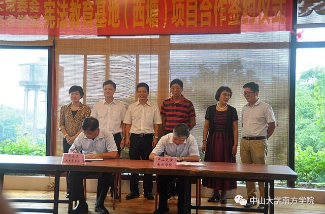 为深入学习贯彻习近平总书记系列重要讲话和十九大精神,认真贯彻实施全国“七五”普法规划,大力弘扬社会主义法治精神,培养法治信仰,将宪法学习教育引向深入,9月20日下午,中山大学南方学院与从化区人大常委会在从化区鳌头镇西塘村举行宪法教育基地(西塘)项目合作签约仪式。beat365校长喻世友、党委书记李建超,从化区人大常委会主任林奕孜、副主任余志平出席仪式。仪式由区人大常委会委员、办公室主任刘敏主持。