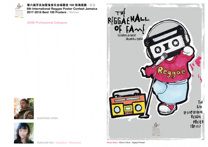 在刚刚揭晓的牙买加第六届雷鬼音乐全球最佳100张海报奖获奖名单中,由陈笑峰老师指导的艺创系17艺术设计伍润玲同学的作品,跻身全球100强。本届海报设计竞赛与往年有所不同,区分专业组与学生组,分别占60与40个名额,而伍润玲同学的作品在60件专业组作品中排名第33位,将于6月5日在英国利物浦举行公开展览。