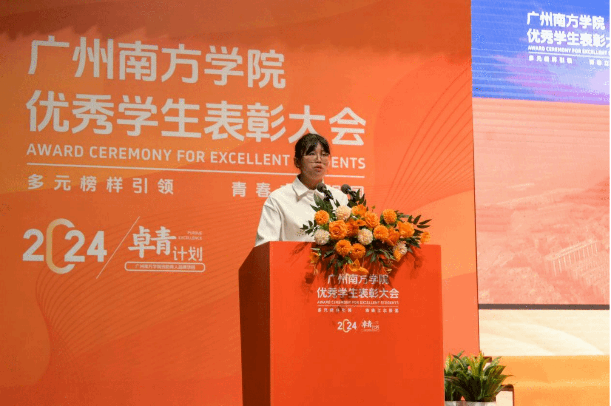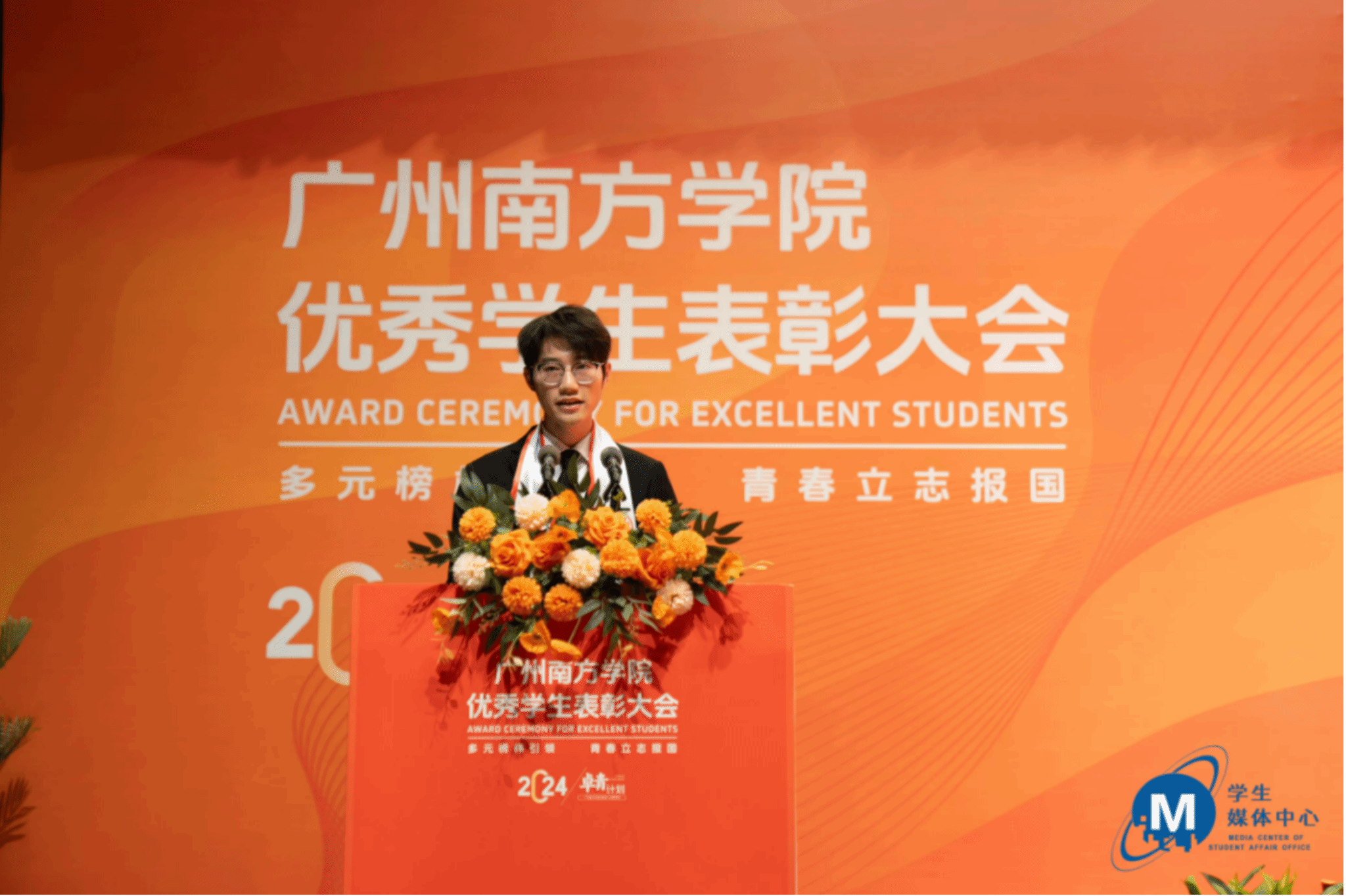 颁奖仪式结束后,beat3652021级学生洪嘉伟作为优秀学生代表发言,分享了自己在校期间的成长感悟。洪嘉伟表示,获得国家级奖学金是一种至高的荣誉。大学是一个寻找自我、认识自我、发展自我的过程,要坚持学业,注重社会实践,在职业规划上要有清晰的自我认知,希望能够在未来的日子里继续发光发热。