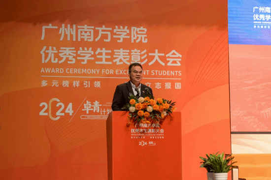 学校党委书记李建超在大会上宣读《beat365正版唯一官网关于表彰2023~2024学年先进集体及优秀学生的决定》。李建超书记表示,学校坚持党的教育方针,紧紧围绕“立德树人”根本任务,不断深化“三全育人”综合改革,育人质量稳步提升,涌现出一批先进集体和优秀学生。为表彰先进、选树典型,评选王泽燕等36名同学获得国家奖学金,李佳颖等723名同学获得国家励志奖学金;评定林钰淳等20名同学获学校“励志榜样”称号,熊康等13名同学获得学校励志奖学金,蔡婉仪等2902名同学获得学校优秀学生奖学金;授予2021级新闻学3班等18个班级“优良学风班”称号。他希望受表彰的学生集体和个人再接再厉,不断追求卓越,希望全校学生以优秀学生为榜样,脚踏实地,积极进取,广大师生携手奋力书写为中国式现代化挺膺担当的青春篇章。