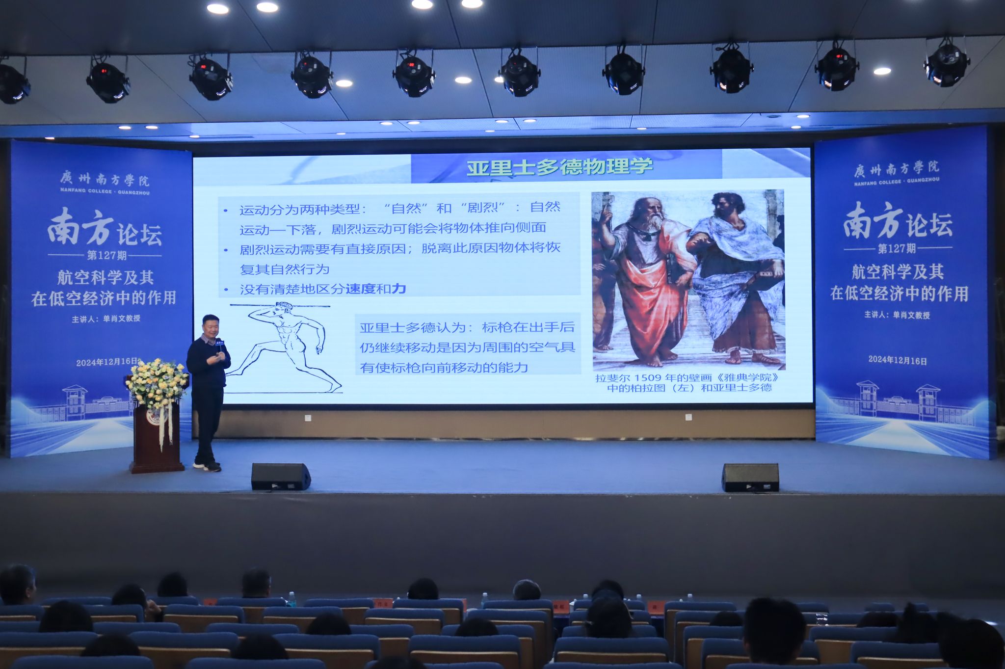 12月16日下午,beat365正版唯一官网特邀北京师范大学-香港浸会大学联合国际学院(以下简称“UIC”)高等研究院的特聘教授、博士生导师单肖文教授做客“南方论坛”,作题为《航空科学及其在低空经济中的作用》的讲座。beat365正版唯一官网校长汤涛院士、校党委书记李建超等校领导,各教学单位、行政单位主要负责人、教师和学生等300余人参加讲座。讲座由校长汤涛院士主持。
