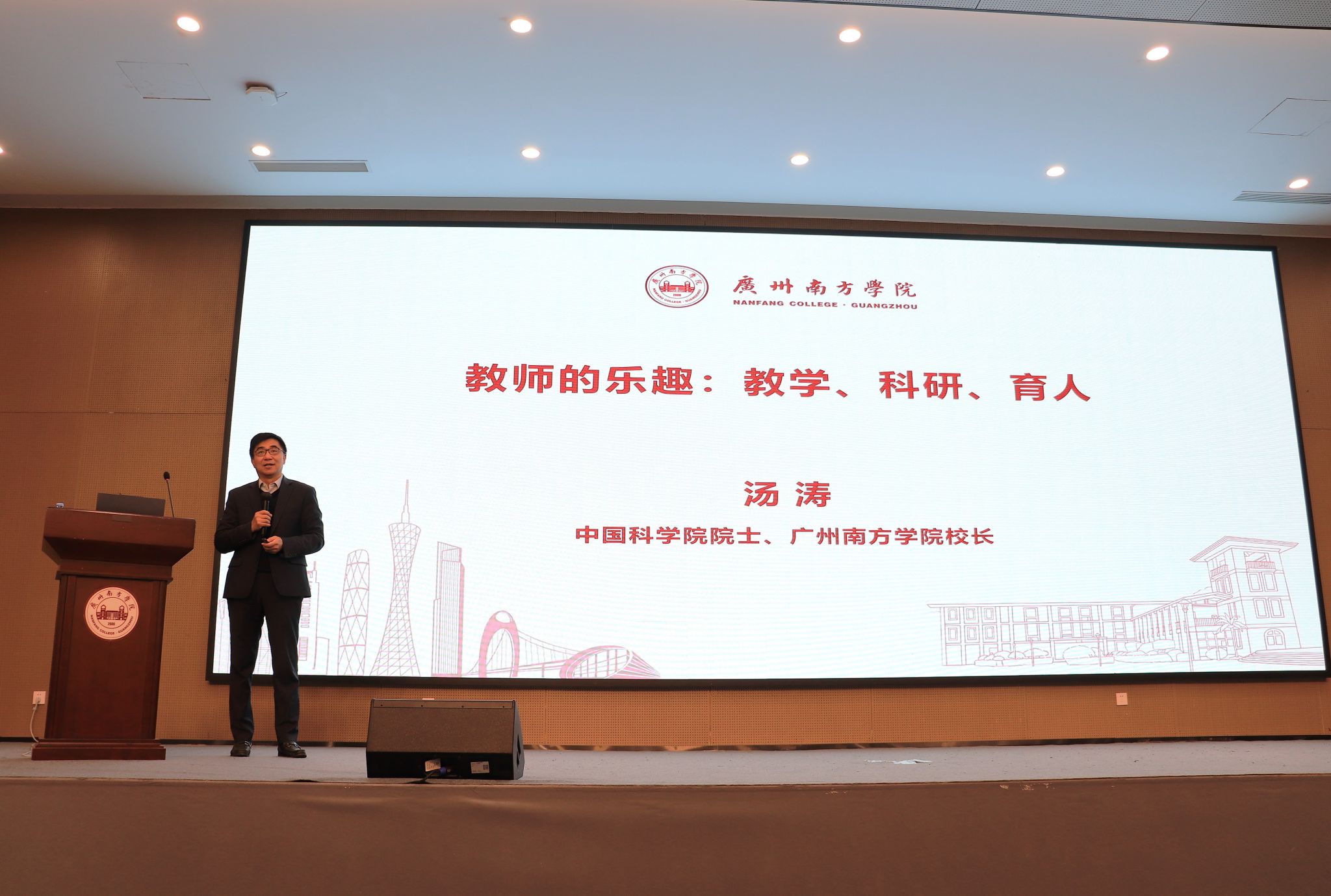 讲座伊始,汤涛结合自身从教数十年的丰富经历,以幽默生动的语言,深入浅出地阐述了教师职业的独特价值与乐趣。他指出,教师不仅是知识的传授者,更是学生成长的引路人和学术创新的推动者。教学、科研、育人三位一体,构成了教师职业生涯的丰富内涵。