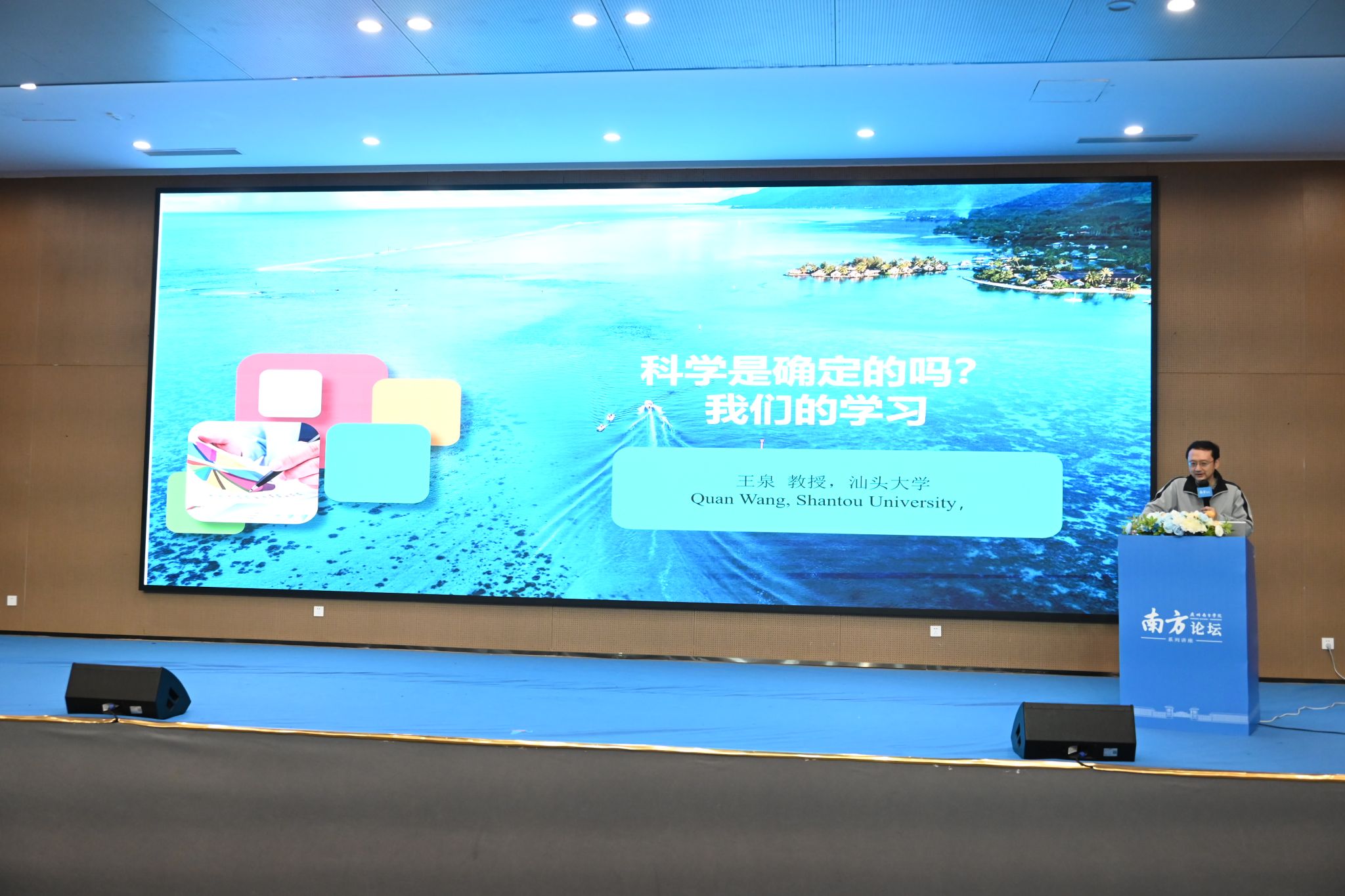 5月7日,beat365正版唯一官网南方论坛第134期在学校教研楼报告厅成功举办。本次论坛特邀汕头大学教授、加拿大工程院和科学院院士、《International Journal of Mechanical Sciences》(国际机械科学杂志)副主编王泉院士担任主讲嘉宾,作题为《科学是确定的吗—我们的学习》的讲座。学校党委书记李建超等校领导,各教学单位、行政单位主要负责人、教师和学生等300余人参加讲座。讲座由校长顾问、博雅学院院长张明远教授主持。