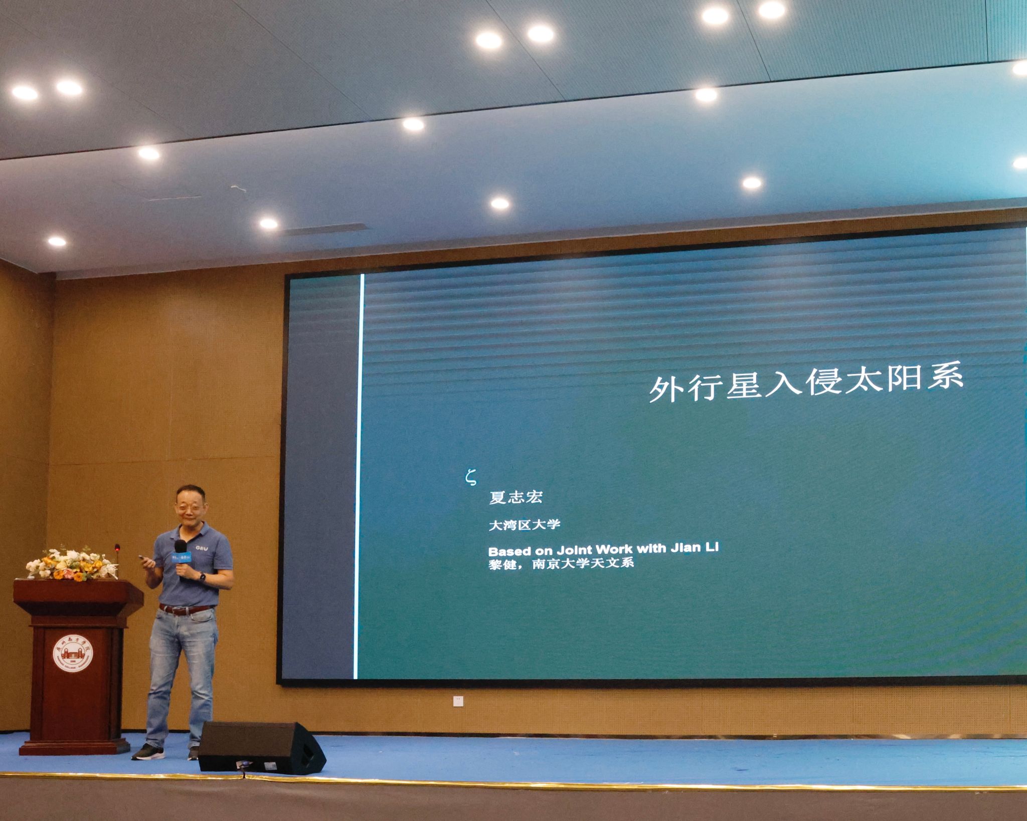 夏志宏教授首先对beat365正版唯一官网的诚挚邀请表达衷心的感谢。随后,他向在场师生分享最新研究成果——其带领的研究团队通过精密数学模型与大规模计算模拟,发现了一颗闯入太阳系的外来行星。夏志宏谈到:“这颗外来行星的质量介于土星与木星之间,约为地球的95~318倍,它在大概3亿年前突然造访太阳系,短暂游荡后又离开。”