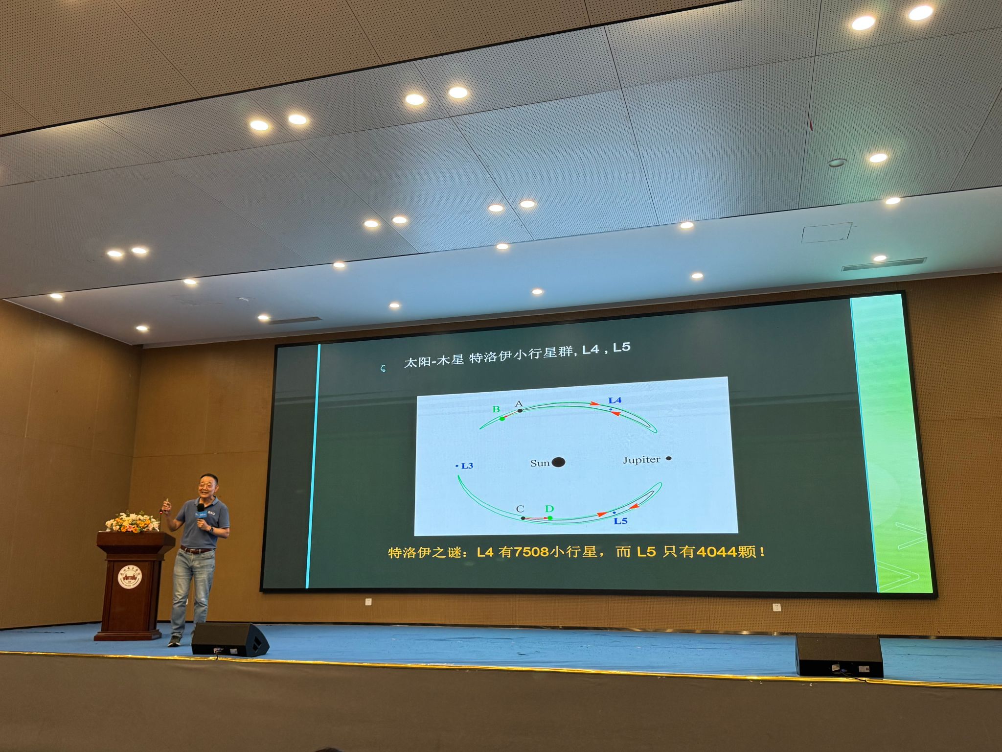 谈及研究契机,夏志宏表示,团队最初聚焦于木星特洛伊小行星群(Trojan asteroids)的异常分布。早在1989年,著名的美国天文学家舒梅克(Shoemaker)夫妇(Shoemaker-Levy9彗星的共同发现者)注意到,木星L4平衡点附近的小行星比L5附近多。理论上,这些小行星应呈现对称状态,实际观测却显示L4点的小行星数量比L5点多出65%。他表示,这在天文学领域被称为“特洛伊之谜”。而这种不对称现象难以用现有的太阳系演化模型解释,成为一个亟待解决的天文谜题。