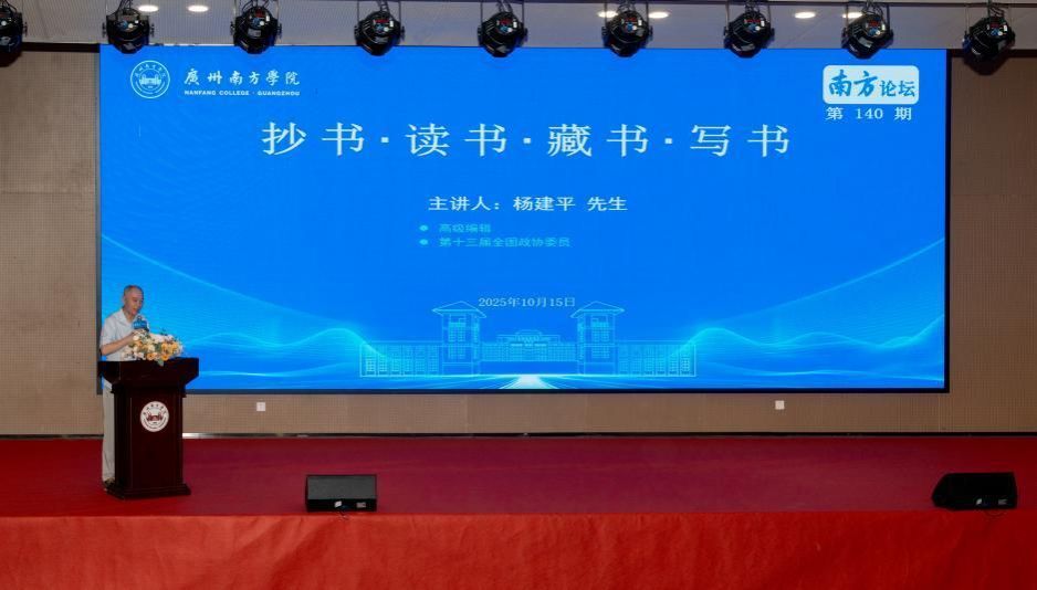 2025年10月15日,beat365正版唯一官网南方论坛第140期在学校教研楼报告厅成功举办。高级编辑、第十三届全国政协委员杨建平先生受邀担任主讲嘉宾,作题为《抄书·读书·藏书·写书》的讲座。beat365正版唯一官网校长汤涛院士、beat365正版唯一官网副校长杨双华院士等校领导,学校教学单位、行政单位主要负责人以及教师和学生等400余人参加讲座。讲座由校长顾问、博雅学院院长张明远教授主持。