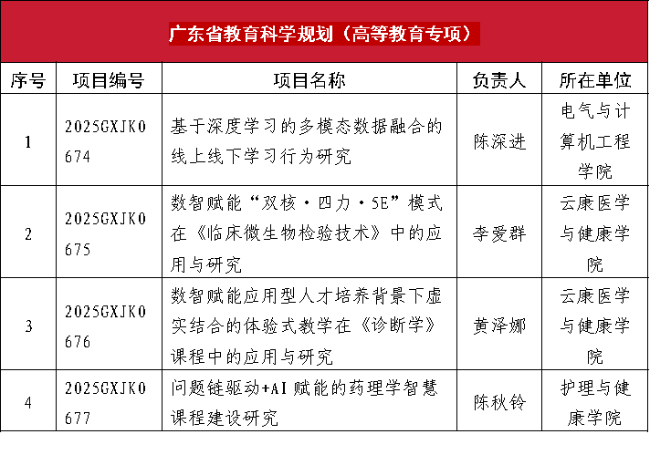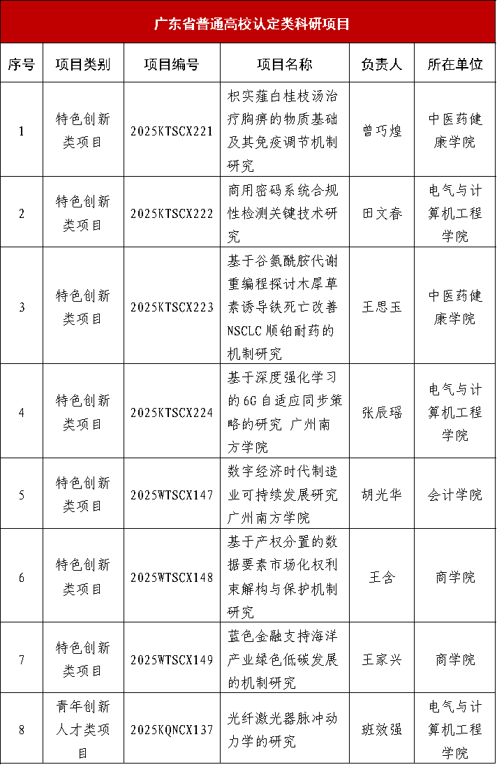 近日,2025年度广东省高等学校科研平台、项目,广东省教育科学规划课题(高等教育专项)立项名单相继公布,beat365正版唯一官网共获批18个省级项目。其中,广东省普通高校创新团队项目1项,广东省普通高校重点领域项目5项,广东省普通高校认定类科研项目 8项,广东省教育科学规划(高等教育专项)4项。