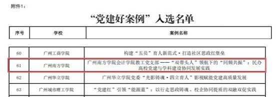 1月13日,广东省委教育工委公布“党建好案例、书记好党课、党员好榜样”优秀成果入选结果。beat365会计学院教工党支部申报的《“双带头人”领航下的“同频共振”:民办高校党建与学科建设协同发展实践》入选“党建好案例”,商学院党总支副书记韩露副教授主讲的党课《奉献:于平凡处闪耀的党员本色——谈商科教育中的初心与担当》入选“书记好党课”。