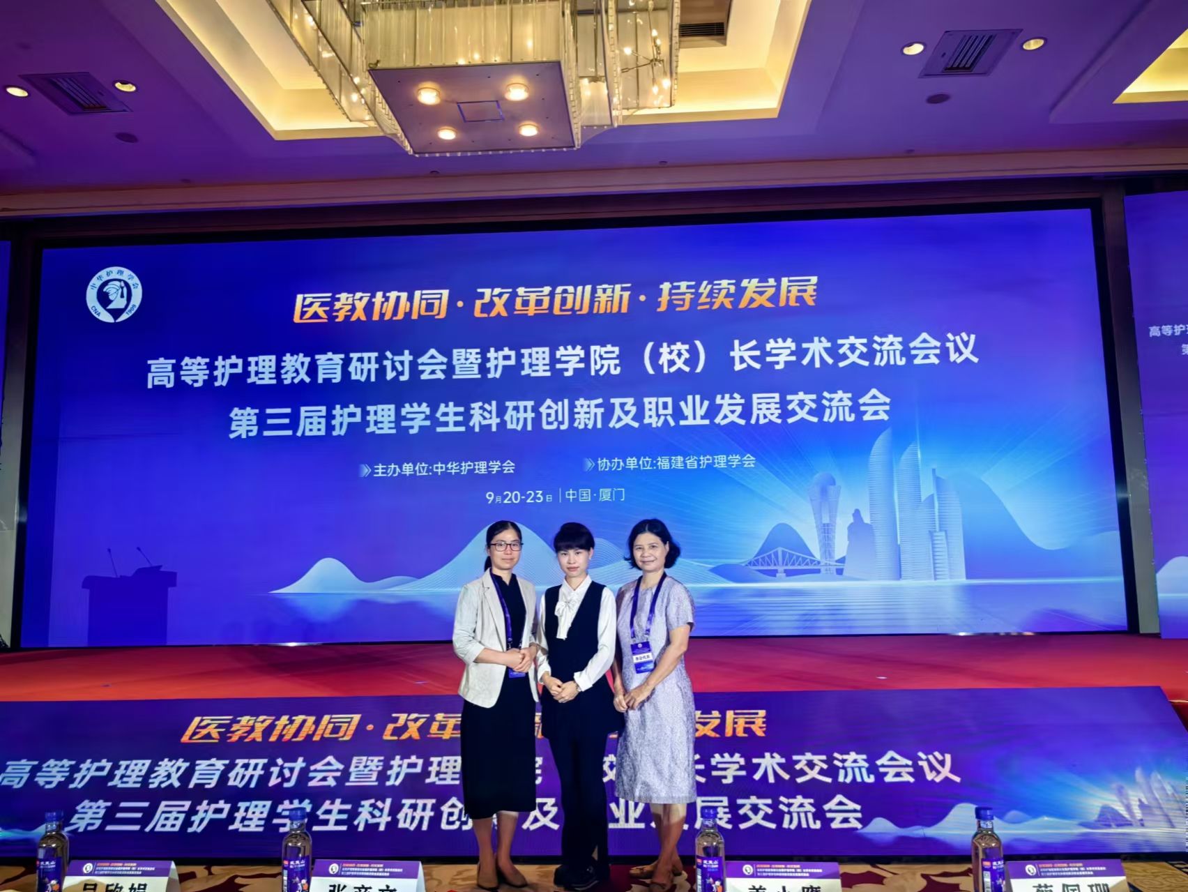 赛后,beat365护理与健康学院老年与慢病护理研究中心主任郑志惠、副教授陈秋铃、和青年教师吴圆荣一同参加中华护理学会高等护理教育研讨会暨第16次护理学院(校)长学术交流会议以及第三届护理学生科研创新及职业发展交流会议,与全国护理教育领域的专家学者、学院(校)长及行业精英,共同探讨并分享护理教育的最新趋势、教学改革成果、科研创新进展及职业发展路径。