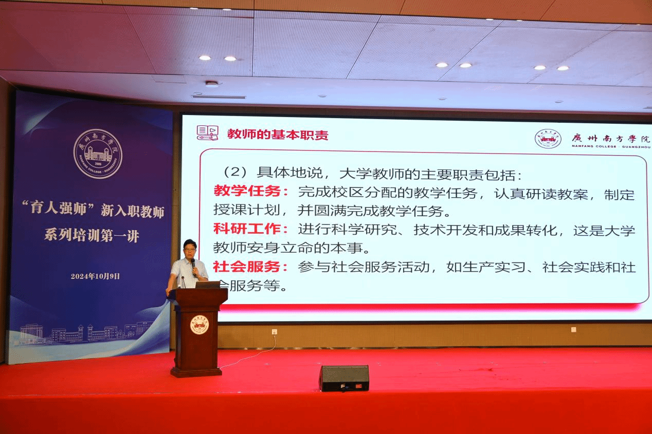 为了进一步提升教师的教学能力和职业素养,beat365教务处、教师教学发展中心于10月9日上午启动了“育人强师”系列培训。首场讲座特邀曹广福副校长主讲,主题为“如何站好三尺讲台”,旨在为新入职教师提供全面的教学技能提升与职业素养培养。讲座由教务处处长钟肖英主持。