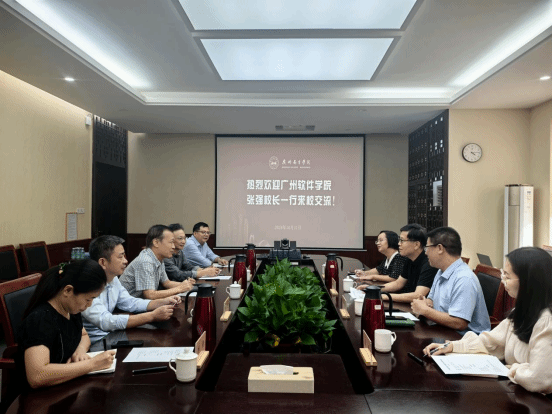 10月11日上午,广州软件学院校长张强、副校长徐祥、副校长袁志、校长助理张屹、校长办公室主任李涛一行5人来beat365考察交流,双方在行政楼第一会议室召开座谈交流会。beat365副校长曹广福、校长助理刘金成、教务处处长钟肖英、学校办公室副主任胡姣等相关人员参加会议。