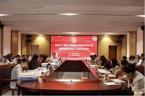 10月22日,学校党委在综合楼第一会议室组织召开新时代高校党建示范创建和质量创优工作交流培训会,旨在深入贯彻落实习近平新时代中国特色社会主义思想和党的二十大精神、党的二十届三中全会精神,认真贯彻习近平总书记关于加强高校党建工作的重要论述,进一步提升学校基层党组织建设质量。会议特邀中山大学组织部副部长刘洁予、广东外语外贸大学中国语言文化学院党委书记谢秀兰、广东技术师范大学组织部部长郭磊到会指导。各二级党组织副书记、党支部书记、党委组织统战部全体人员参加交流培训会,会议由党委组织统战部部长宋得福主持。