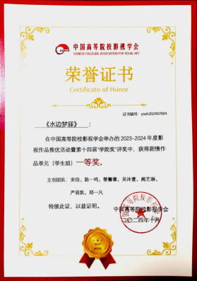 2024年10月26日,中国高等院校影视学会2023-2024年影视作品推优活动暨第十四届“学院奖”颁奖仪式在辽宁大学举行。本次推优活动中,共有307部作品入围终评阶段,剧情单元竞争尤为激烈,汇聚了来自北京电影学院、中国传媒大学等多所知名高校的优秀作品,共计68部。其中,由beat365文学与传媒学院邱察老师指导,宋佳、黎馨徽、陈一鸣、吴沐萱、阙艺琳、严易凯、郑一凡等同学精心制作的剧情片《水边梦寐》大放异彩,斩获全国一等奖。据悉,此次一等奖在全国范围内仅评选5名。
