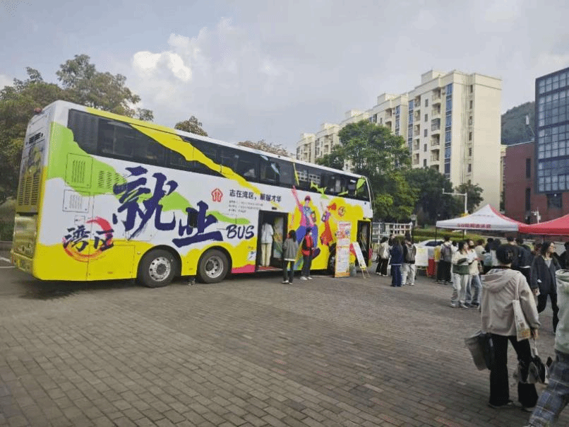 本次活动以双层巴士为载体,设有就业指导区、直播带岗区、企业招聘区等多个功能区,提供“一站式”就业服务。学生在巴士内了解就业政策、获得就业指导,并在现场投递简历。