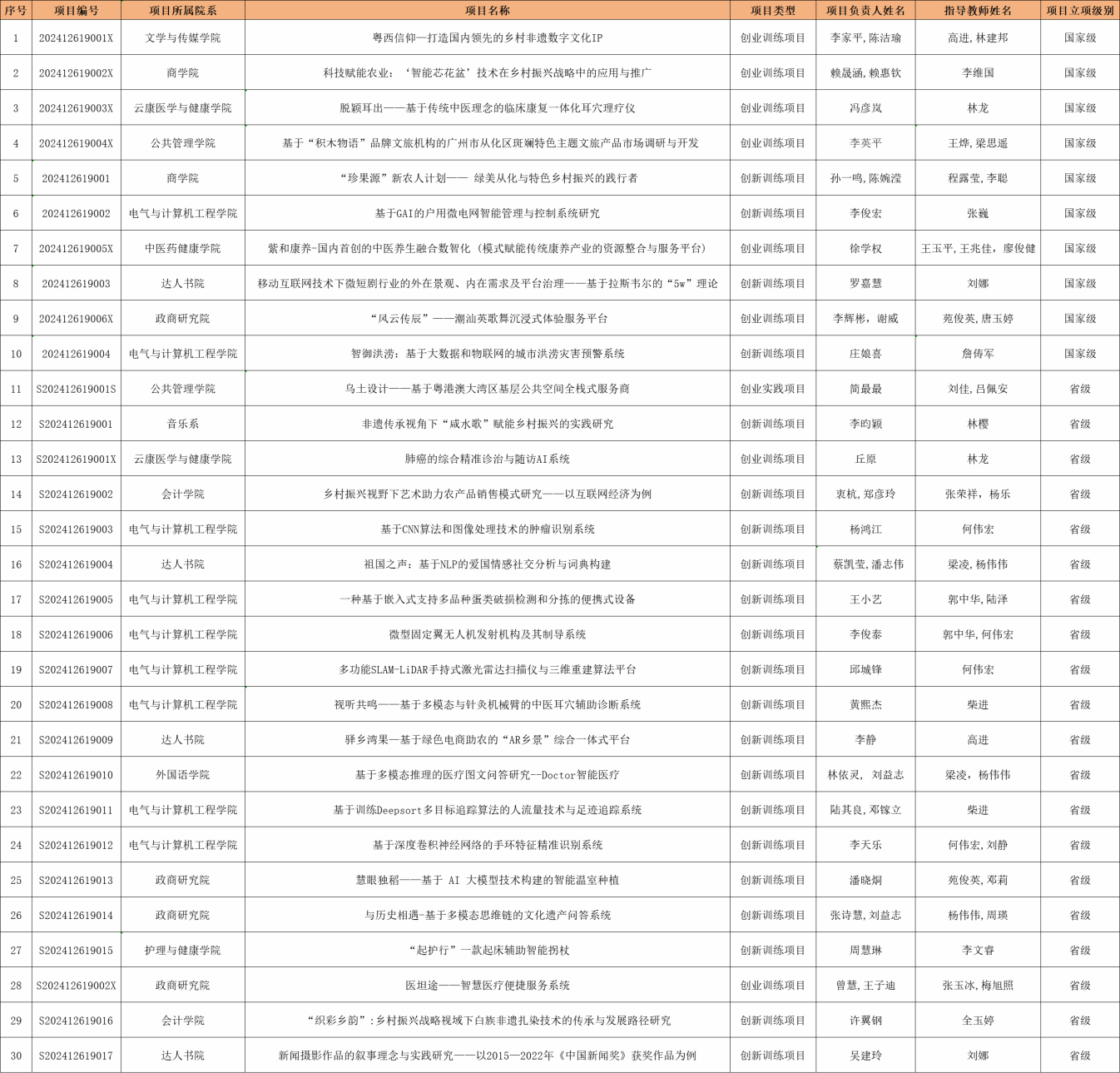 近日,广东省教育厅印发了《广东省教育厅关于公布2024年大学生创新创业项目立项和结题验收结果的通知》(粤教高函〔2024〕32号)。beat365共获批省级以上项目42项。其中,国家级项目10项、省级项目32项。