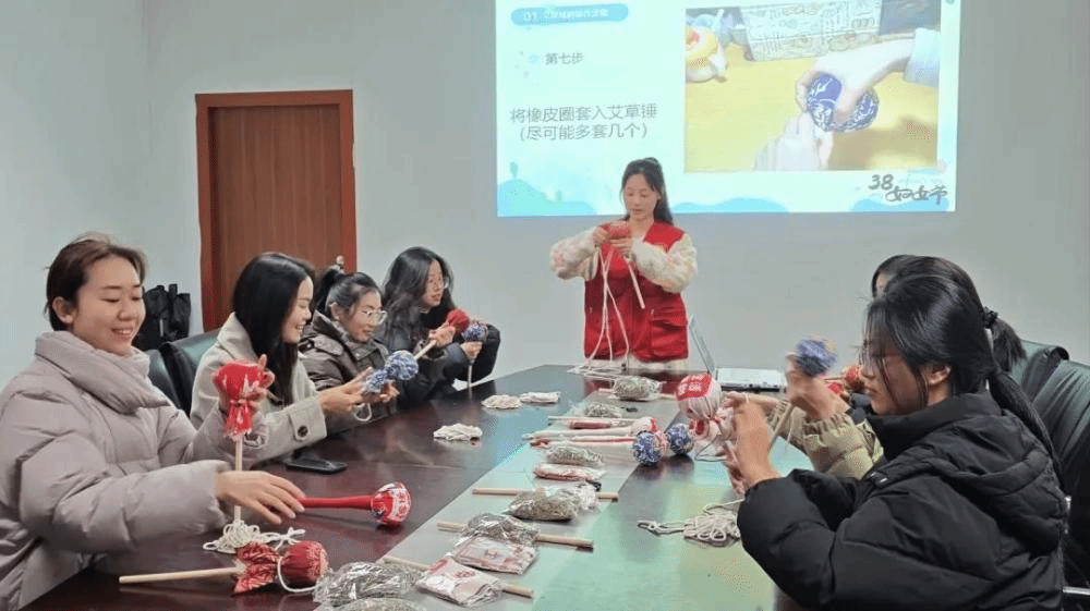会计学院二级工会联合会计学院学生第三党支部、会计学院党总支党建工作小组及会计学院团委学生会志愿者共同组织艾草锤的制作活动。通过选配草药、裹布缠绳等工序,将艾叶、陈皮等天然中药材料手工制成养生艾草锤,在传承中医药文化的同时,为辛勤耕耘的教职工送上健康祝福。
