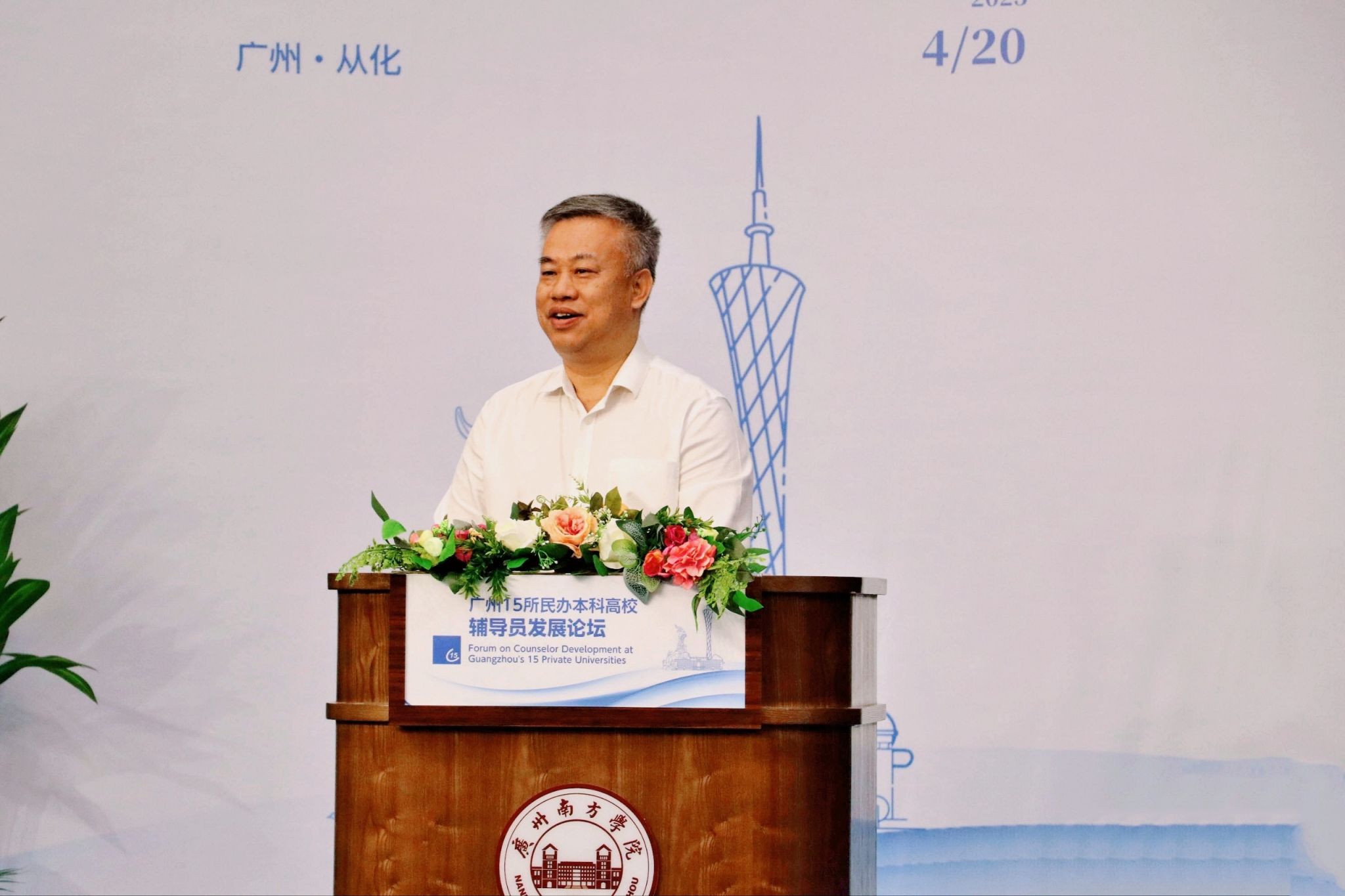论坛伊始,植秀聪副书记致欢迎辞。他首先介绍了学校在应用型大学建设与“三全育人”工作中取得的成果。他指出,此次与珠江畔的各高校共同举办辅导员发展论坛,旨在搭建广泛交流、深入探讨的平台。植秀聪表示,论坛既是思想碰撞的载体,更是躬身实践的起点,希望以此次论坛为契机,凝聚各方智慧,共同探索辅导员培养的创新模式与实践路径,不断提升辅导员队伍的专业能力和综合素养。