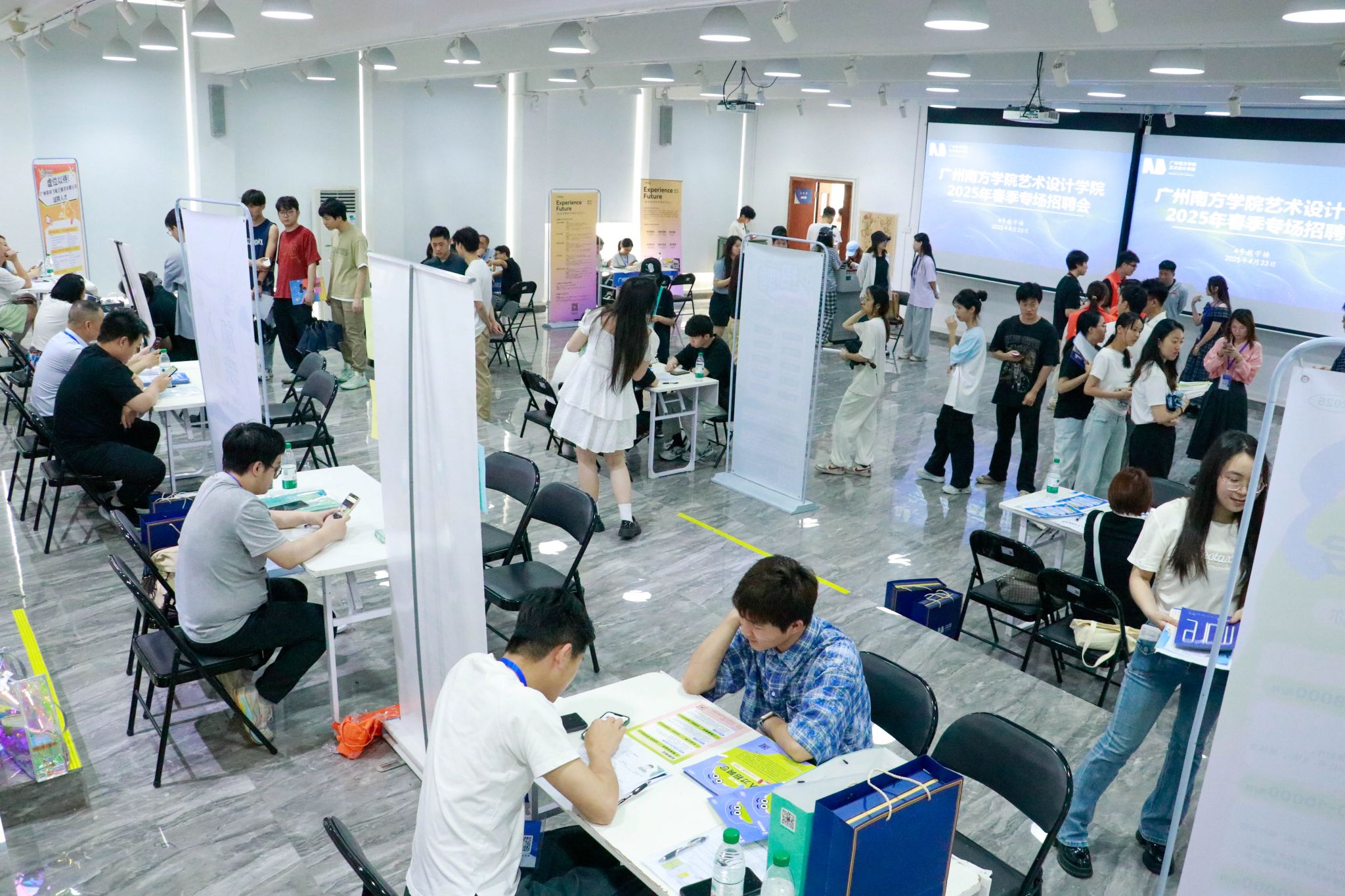 据悉,本次招聘会吸引包括广州锦墨网络科技有限公司、广州新众创科技有限公司、广州城市意创建筑设计咨询有限公司在内的14家用人单位参展,涵盖艺术设计、游戏技术、文化创意、教育教培、传媒等领域,共提供280余个就业岗位,为2025届毕业生搭建求职平台。