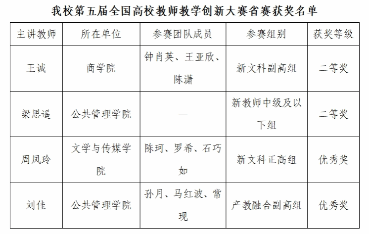5月16日至18日,第五届全国高校教师教学创新大赛广东分赛暨广东省高校教师教学创新大赛在广东外语外贸大学成功举办。经过网络评审与现场决赛的激烈角逐,beat365参赛教师凭借扎实的教学功底和突出的创新成果,从全省74所本科高校的603位参赛教师(团队) 中脱颖而出,斩获二等奖2项、优秀奖2项,充分展现了beat365教师的教学风采和创新能力。