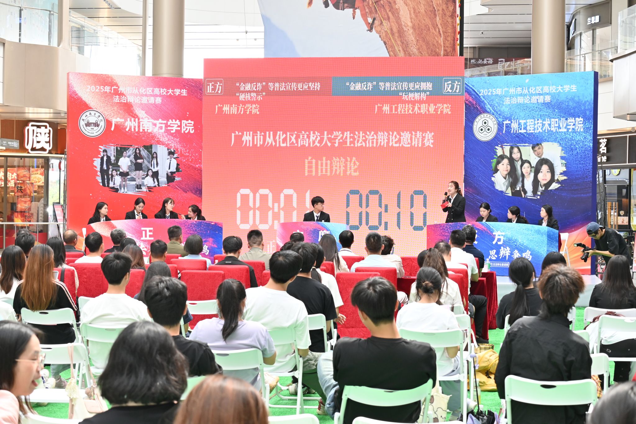 据悉,本次比赛由中共广州市从化区委全面依法治区委员会、广州市从化区新时代文明实践中心指导,区委依法治区办、区委宣传部等单位联合主办。本次赛事覆盖区内外11所高校,吸引了数百名青年学子同台竞技。辩论赛紧扣时代脉搏,选题聚焦“人工智能生成作品的著作权”和“金融反诈等普法宣传的创新表达”,展现了法治建设与科技发展、社会变迁、金融教育的深度融合。