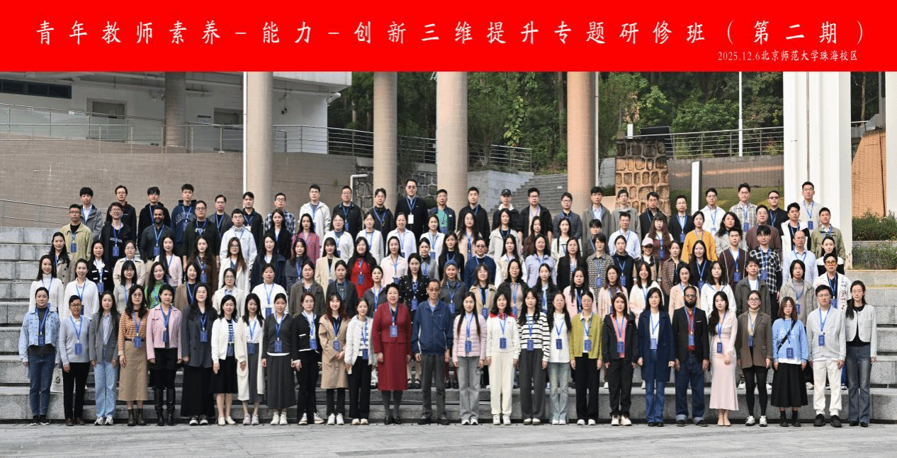 为深入贯彻落实新时代教师队伍建设要求,全面提升青年教师综合素养与教学创新能力。beat365于2025年11月28日至30日、12月5日至7日,分两批次组织青年教师赴北京师范大学珠海校区参加“青年教师素养·能力·创新三维提升专题研修班”。本次研修依托北京师范大学的优质师资与学术平台,通过系统化、前沿性的专题培训,围绕教学理念更新、人工智能赋能教学、有效教学实践等核心议题展开深度学习和研讨,旨在助力beat365青年教师更新教育理念、掌握先进方法、提升创新能力,为学校高质量发展注入新的动力。